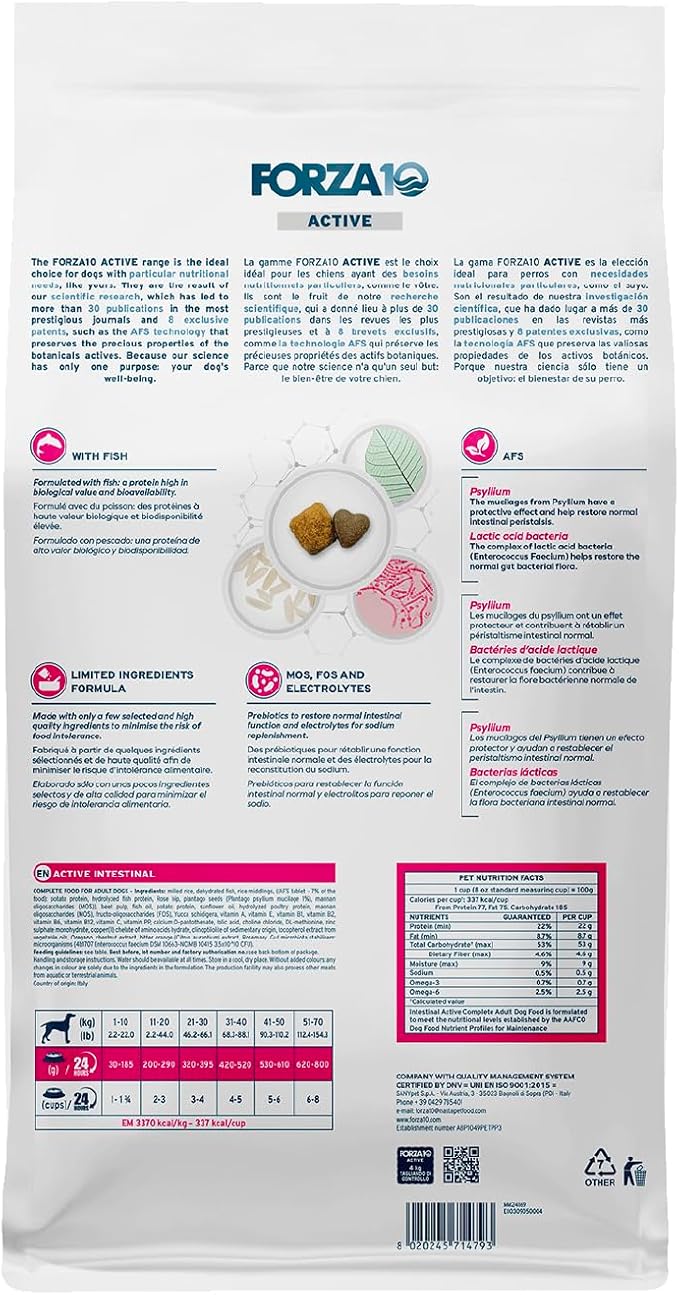 Forza10 - Dog Food, Limited Ingredient Dog Food for Healthy Digestion and Sensitive Stomach, Non-GMO, Fish Flavor, Made in Italy (8.8 lb)
