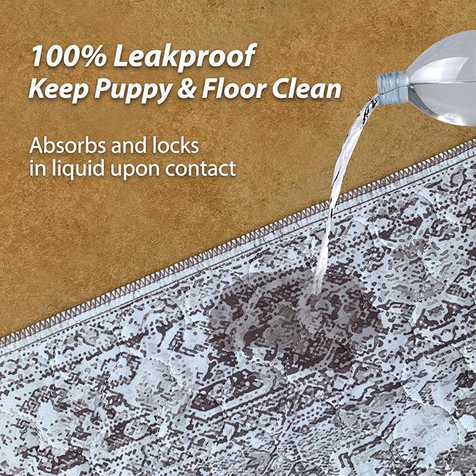 nunubaby 4PACK Washable Pee Pads for Dogs, Stylish, Non-Slip and Leak-Proof Pee Pads. Reusable Potty Pads for Dogs for Crates and Floors.(Brown/Geo, 18" x24")
