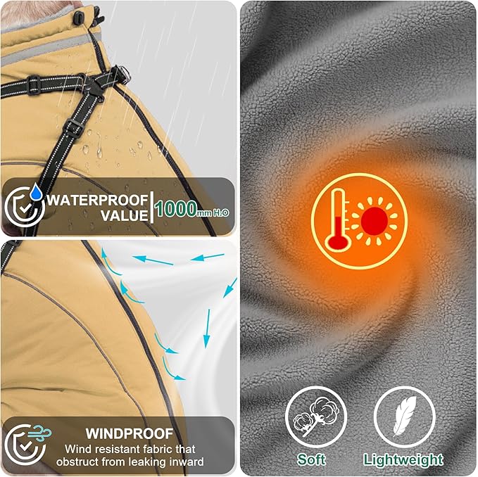 - Waterproof 1000mm H2O: The dog coats with harness built in 1000mm waterproof fabric keeps your pet dry in rainy and snowy conditions