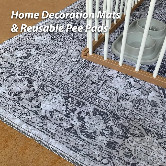 nunubaby Washable Pee Pads for Dogs, Stylish, Non-Slip and Leak-Proof Pee Pads. Reusable Potty Pads for Dogs for Crates and Floors.(Gray/Geo, 24" x36" )
