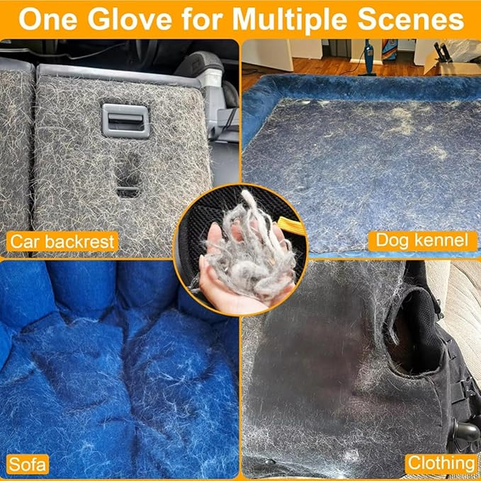 - 【Double-Sided Design for Maximum Efficiency】: Both sides of the glove are optimized for pet hair removal, allowing you to clean more effectively and save time. Ideal for use on multiple surfaces—perfect for pet owners, car owners, and home cleaning.