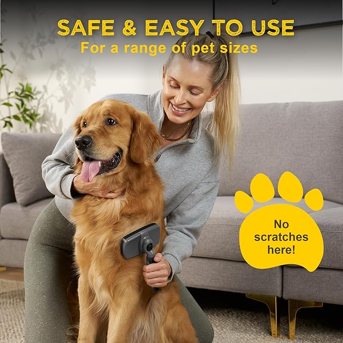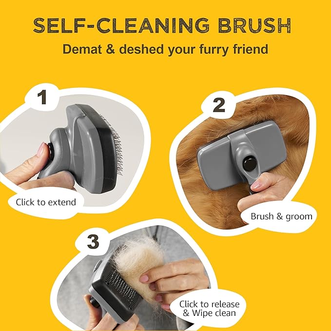 - EASY SELF CLEAN: Cleaning up after grooming is a breeze with the self-cleaning feature. Simply press the button to retract the bristles, instantly dropping the collected hair, allowing for quick and hassle-free disposal.