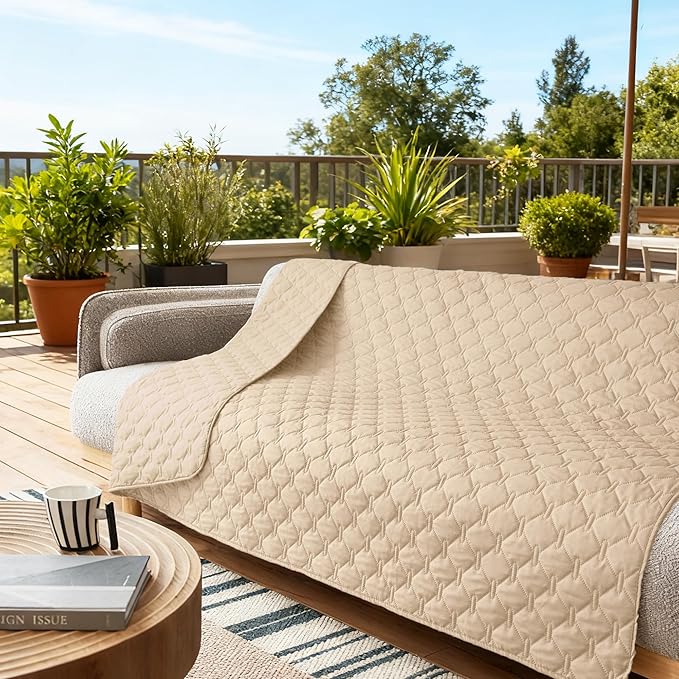 gogobunny 3X Stronger Waterproof Pet Blanket, Scratch Proof Furniture Protector for Dogs Cats, Reversible Cover 82x120 Inch, Dark Beige