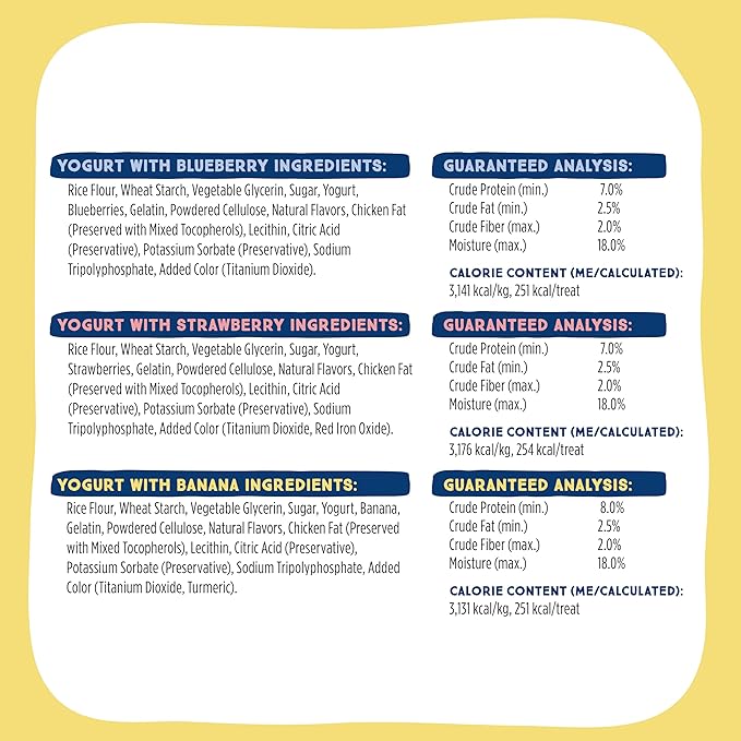 Ultra Chewy 3 Flavor Yogurt Double Treat Bones: Strawberry, Blueberry and Banana, Long-Lasting Dog Treats Made in USA for Large and Small Breeds, Highly Digestible (12 Count)