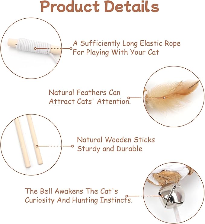 - Interactive Cat Toy: This feather wand toy for cats allows your cat to get plenty of exercise while having fun, releasing energy, and feeling happy and relaxed. It's also fun to watch your cat go crazy chasing this feather toy while protecting your furniture. Bring you and your cat closer together; your companionship and interaction are the happiest things in their lives.