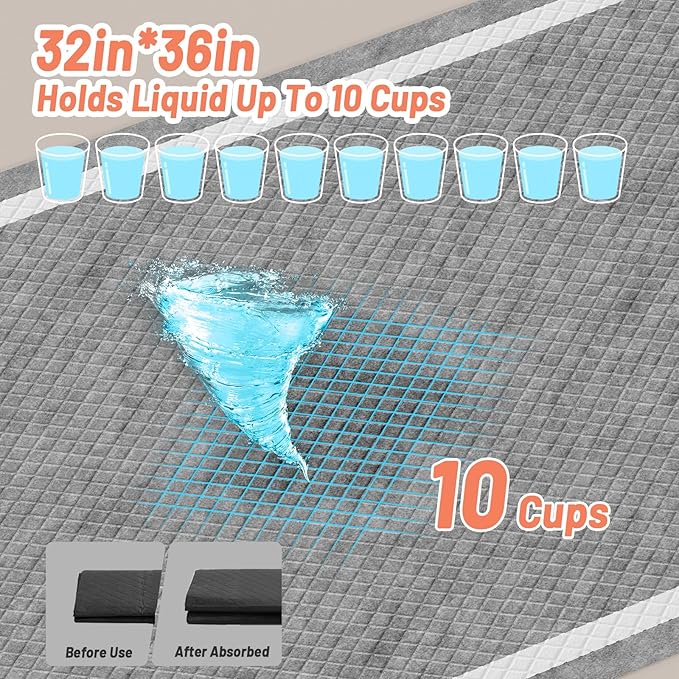 - Thicken & Leak-Proof Design: Our potty pads are more efficiently to prevent floor and carpet from damaging, absorb liquid faster, thickened PE film is leak-proof and durable, the polymer core turns urine into gel quickly, keep your pets, kids or the sick elderly feel comfortable all the day