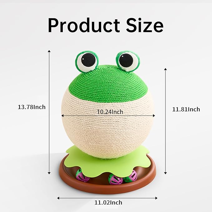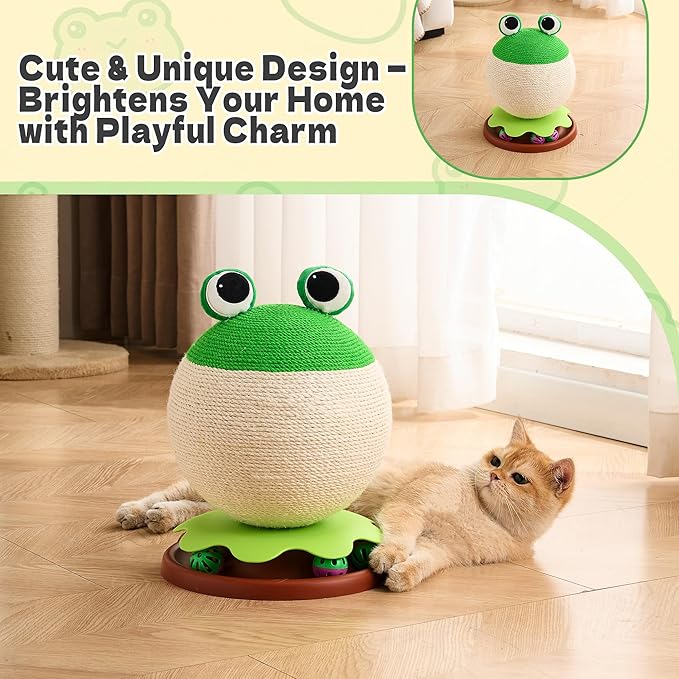 3-in-1 Modern Cat Ball Scratcher & Cat Toys for Indoor Cats/Kittens, Cute Orange/Frog/Bee Design with Bell Ball Track, Natural Sisal Cat Scratching Post, Space-Saving Interactive Cat Scratcher