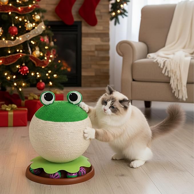 - ✨ 【3-in-1 Fun: Scratch, Play as Cat Toy, & Decor!】 This cat scratching ball, doubles as a cat scratching post alternative to satisfy indoor cats’ and kittens’ natural scratching instincts. The base track with three interactive bell balls sparks playful slapping and chasing—turning it into an engaging cat toy for hours of fun. It keeps your feline energetic, fits seamlessly into any decor style, and makes a perfect pick for modern cat furniture or festive gifts