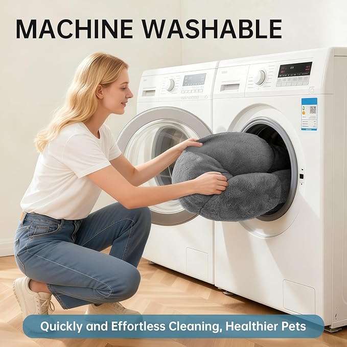 - 【Fully Machine Washable】The entire bed is hassle-free and home washer-safe, with short plush that resists tangling and dries quickly for effortless cleaning