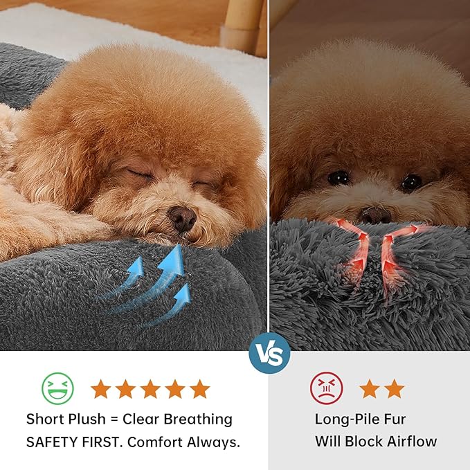 - 【Security & Calming Deep Nest】High, wrap-around edges create a den-like feel that cradles your pet, easing anxiety and promoting secure, deep sleep