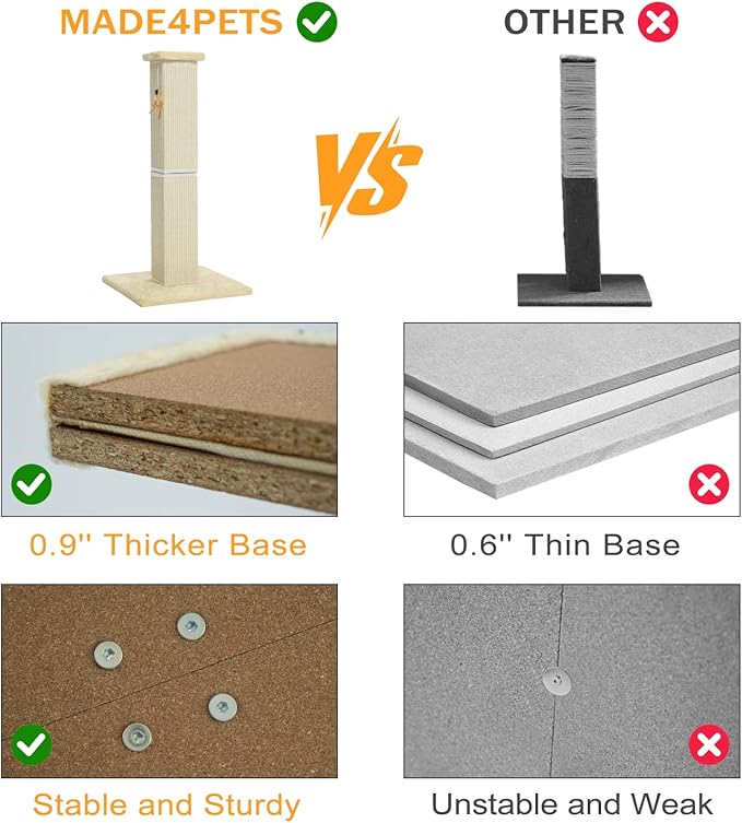 - WIDER & STRONGER BASE – Built with a reinforced 16"x16" square base, this scratching post stays steady and secure even with large cats jumping or climbing, eliminating tipping and wobbling.