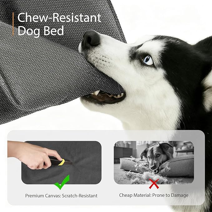 - 【Durable Canvas & Non‑Slip Base】Upgraded 420 g heavy‑duty waterproof canvas is more wear‑ and scratch‑resistant than ordinary fabrics for long‑lasting use. The non‑slip bottom stays put on hardwood and tile floors, making getting on and off safer—especially for senior or mobility‑limited dogs.
