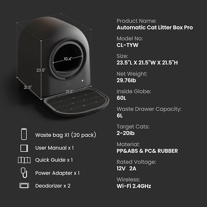 - Litter Box Type : Automated Self-Cleaning Litter Box