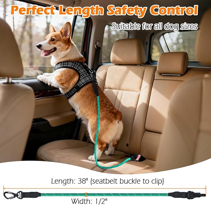 - Perfect Length for Controlled Freedom: The 38"(3 FT) length and 1/2 inch diameter width seat belt for dogs in car safely prevents jumping to the front seat while allowing backseat freedom. It holds them securely without restricting movement, so your pup can safely enjoy the breeze, move freely and comfortably between windows. Ensures they enjoy the ride while you enjoy peace of mind