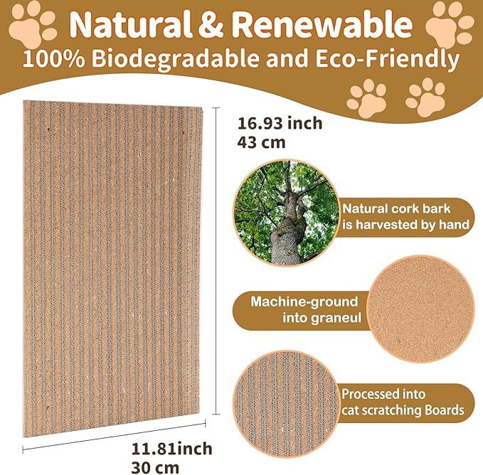 - âťď¸ ăEco-Conscious ChoiceăThe cat Scratching Posts made with sustainable cork that absorbs COâ. Your purchase contributes to a greener planet. Happy cat, happier Earth!