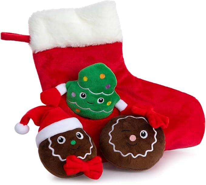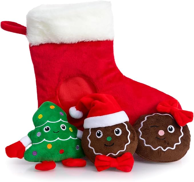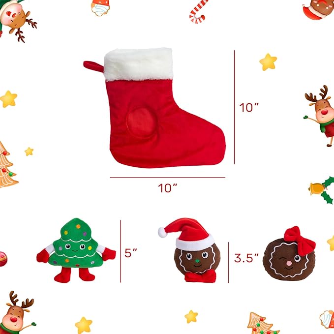 Hollypet Squeaky Dog Toy, Interactive Plush Hide and Seek Dog Toys for Small Medium Sized Dogs and Non-Aggressive Chewers, Puppy Teeth Clean Chew Toys, Christmas Stocking