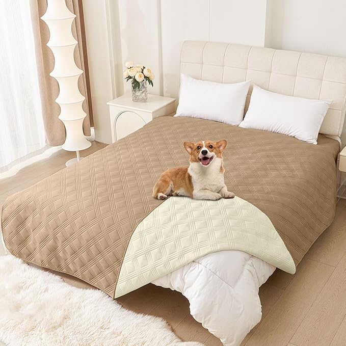 hyha Waterproof Dog Blanket, Reversible Pet Bed Blanket, Soft Sofa Couch Cover for Dogs Washable, Waterproof Pet Couch Covers for Sofa Puppy Cats Furniture Protector(82"x120", Camel/Beige)