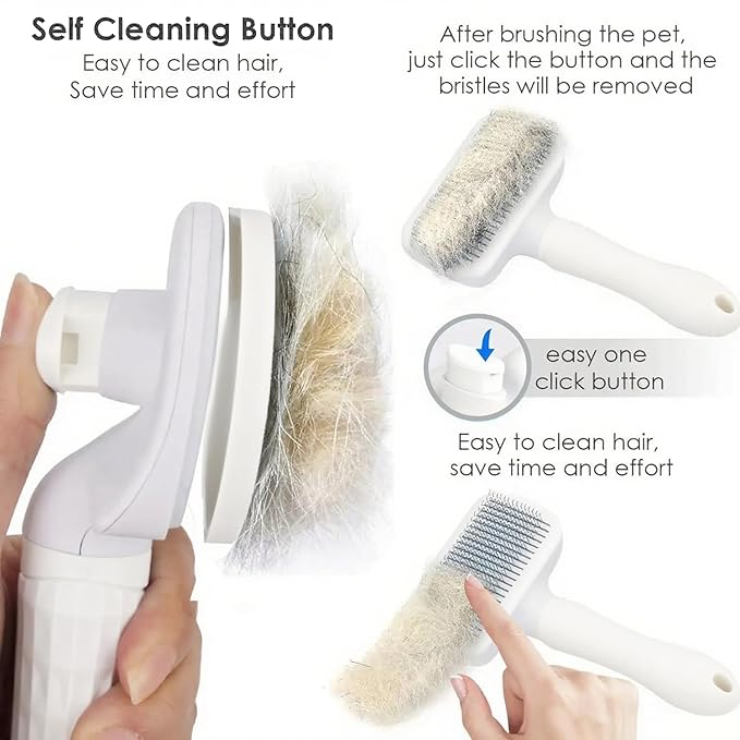 - ⭐ EASY TO USE: All you need to do is press the button to retract the bristles, then slide the hair off. It will only take a few seconds to fully remove the hair from the brush so you may use it again.
