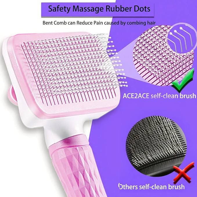 Self Cleaning Slicker Brush, Dog Cat Bunny Pet Grooming Shedding Brush, Easy to Remove Loose Undercoat, Pet Massaging Tool Suitable for Pets with Long or Short Hair (Baby Pink)
