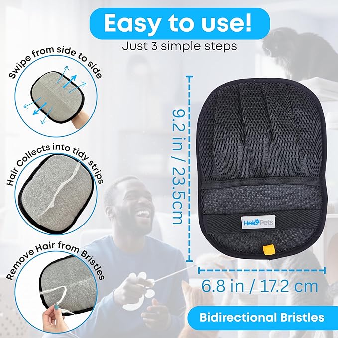 - Upgraded Design & Larger Five-Finger Fit for Faster Cleaning. Enjoy a secure grip and a comfortable five-finger design that prevents slipping. With a larger size than most pet gloves, it covers more surface area, helping you clean furniture, clothing, and car seats in less time and with less effort.