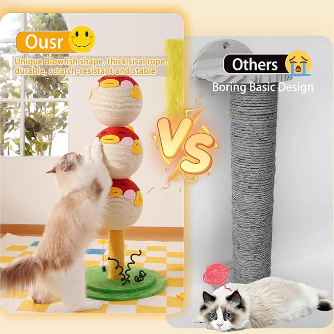 - 🐡【Protect Your Furniture, Save Your Leather Sofa!】This scratching post is tightly wrapped with 100% thick natural sisal rope, making it twice as durable as ordinary scratching boards. It's built to withstand your cat's daily "violent scratching," effectively diverting their scratching instincts away from your fabric sofa, leather couch, or hardwood floors. No more worrying about unsightly claw marks