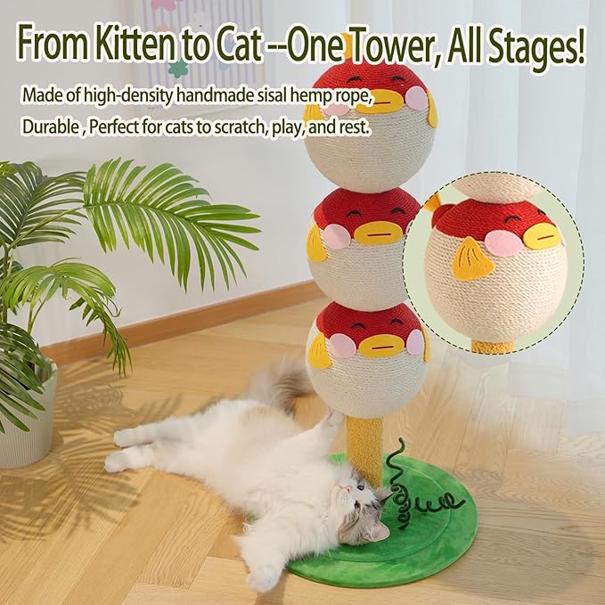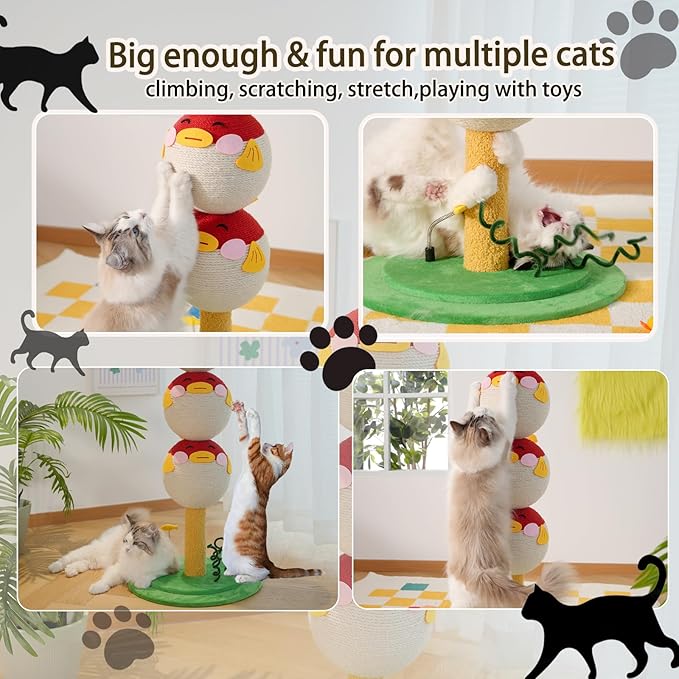 Cute Cat Scratching Post - 31.5" Tall Indoor Cat Tree Tower with Sisal Rope and Interactive Cat Toys, Featuring a Sturdy Base for Kittens and Adult Cats to Stretch Vertically