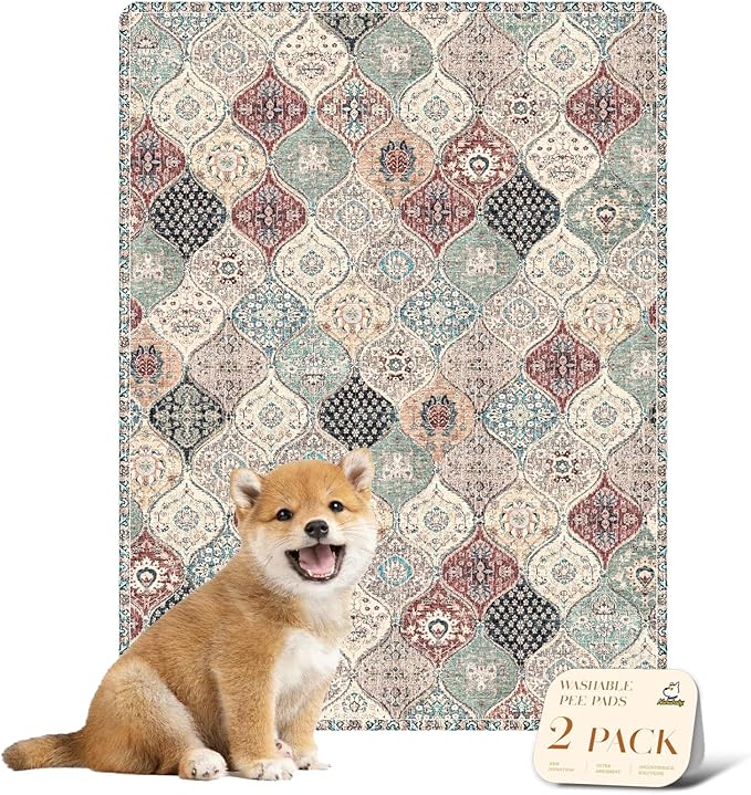nunubaby Washable Pee Pads for Dogs, Stylish, Non-Slip and Leak-Proof Pee Pads. Reusable Potty Pads for Dogs for Crates and Floors.(Dark Red/Multi, 18" x24" )