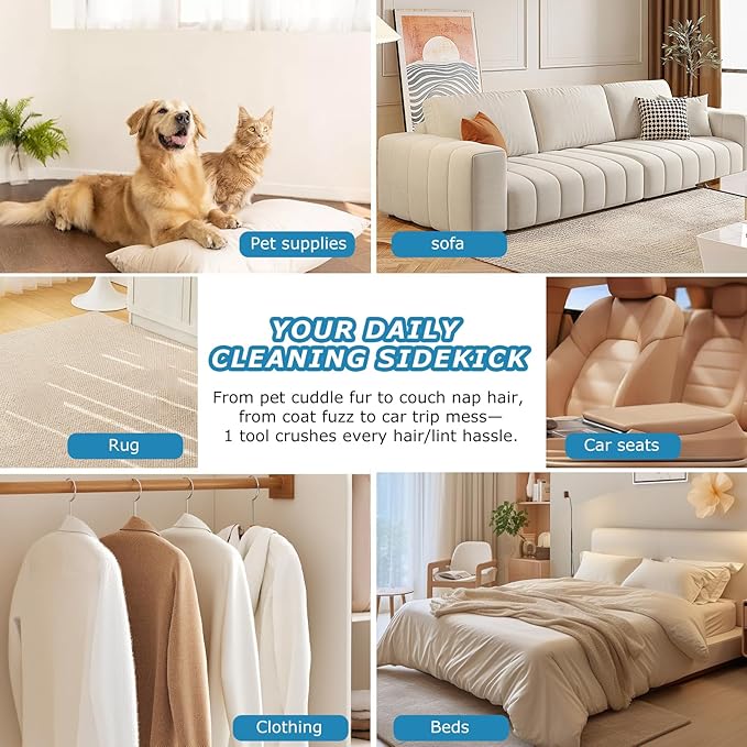 - DUAL-ACTION CLEANING & GROOMING:More than just a household fur remover, it's also a gentle deshedding glove for your pets. Use during brushing sessions to capture loose hair directly from your dog or cat's coat, helping reduce future shedding around the house while promoting a healthier bond with your pet.