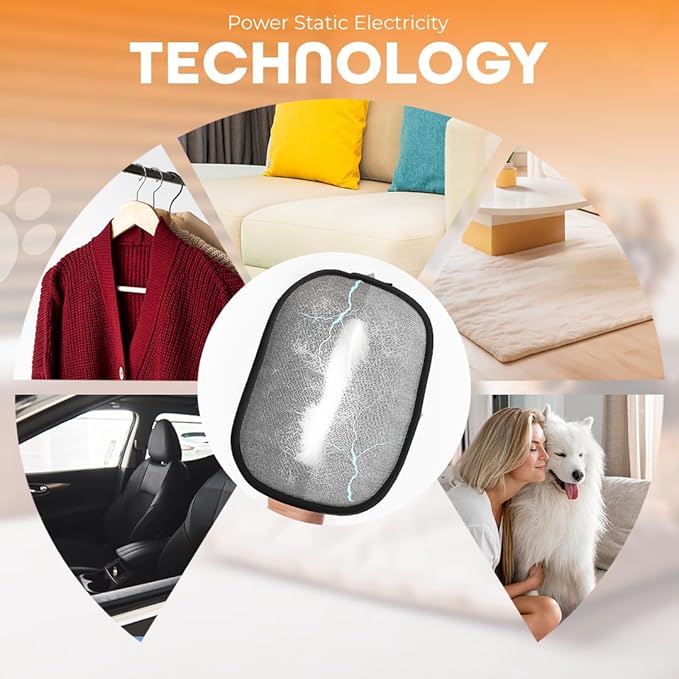 - 2025 UPGRADED PET HAIR REMOVAL GLOVE SET — Tired of sticky rollers and flimsy gloves that barely pick up hair? Our black XL pet hair removal gloves (7x9.44”) feature soft electrostatic fibers that attract cat and dog hair like a magnet — no waste, no mess, just effortless cleaning. Includes 2 reusable gloves + 1 curved yellow brush for a complete home and pet care solution.