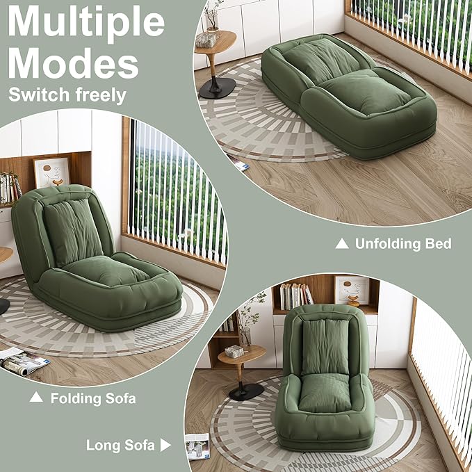 KEIKI Corduroy Human Size Dog Bed, Oversized Foldable Human Dog Bed for Adults and Pets, Adjustable Lounge Sofa Bed with Cushions, Giant Dog Bed for Humans, Green