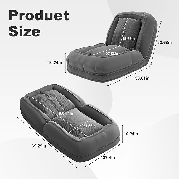 KEIKI Human Dog Bed for Adults, Giant Dog Bed with Adjustable Recliner Function, Foldable Nest Sofa with Pillows for Bedroom or Living Room, Gray