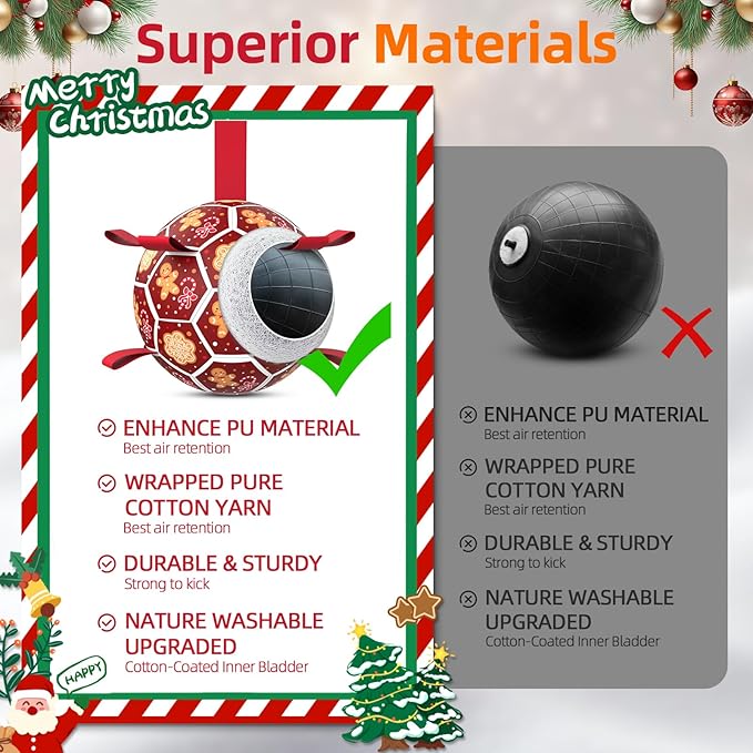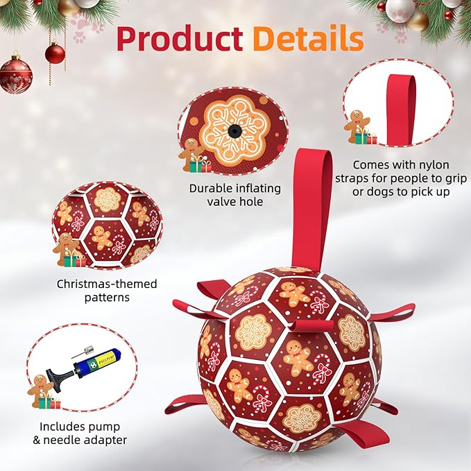 Diman Dog Soccer Ball with Straps, Christmas Dog Toys, Pet Toys Balls for Meium Large, Pet Birthday Gift, Outdoor Pet Toys for Tug of War (7 Inch)