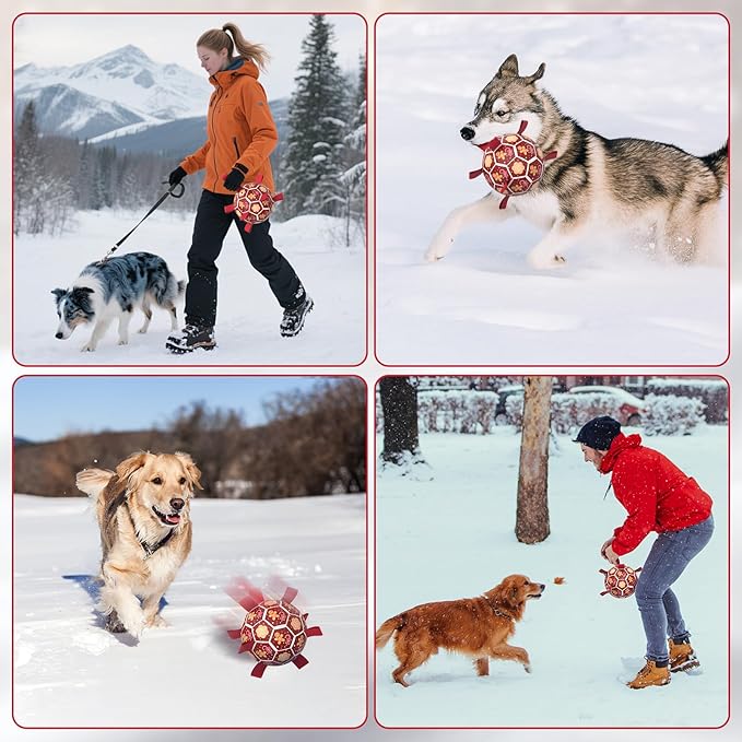 - Dog Soccer Ball with Straps:9 straps and the hexagon texture on the outside that make it easy for dogs to pick up and retrieve during playtime or training. The design of the nylon strap causes the premium pet toys to bounce irregularly when it touches the ground, stimulating the dog's hunting instinct.