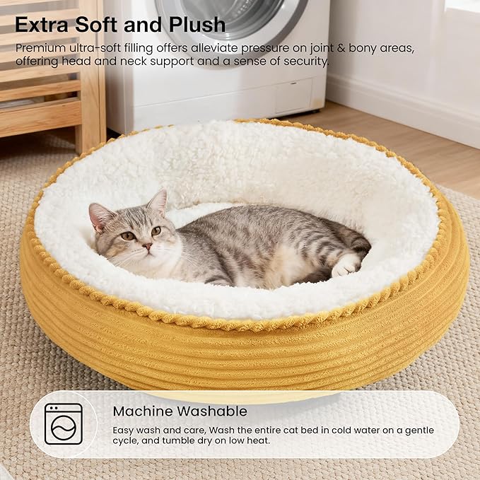 Love's cabin Round Donut Cat and Dog Cushion Bed, 20in Pet Bed for Cats or Small Dogs, Anti-Slip & Water-Resistant Bottom, Super Soft Durable Fabric Pet beds, Washable Luxury Bed Yellow Stripe