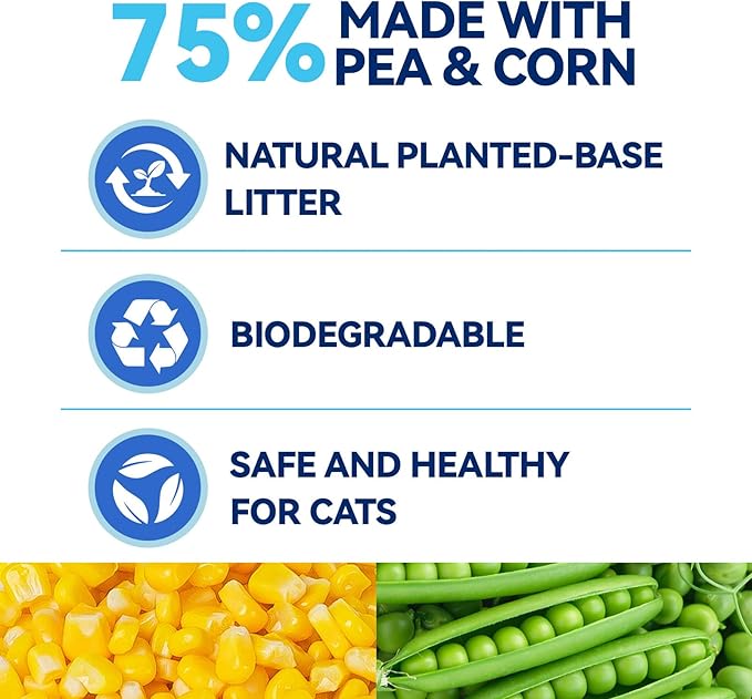 - 【100% Natural & Eco-Friendly Composition】OPET tofu cat litter crafted from 75% plant-based materials—including pea fiber and corn starch—and 20% sodium bentonite. Thanks to its natural and non-irritating properties, this plant-based natural litter ensurs the health of your cats and especially for your little kittens.