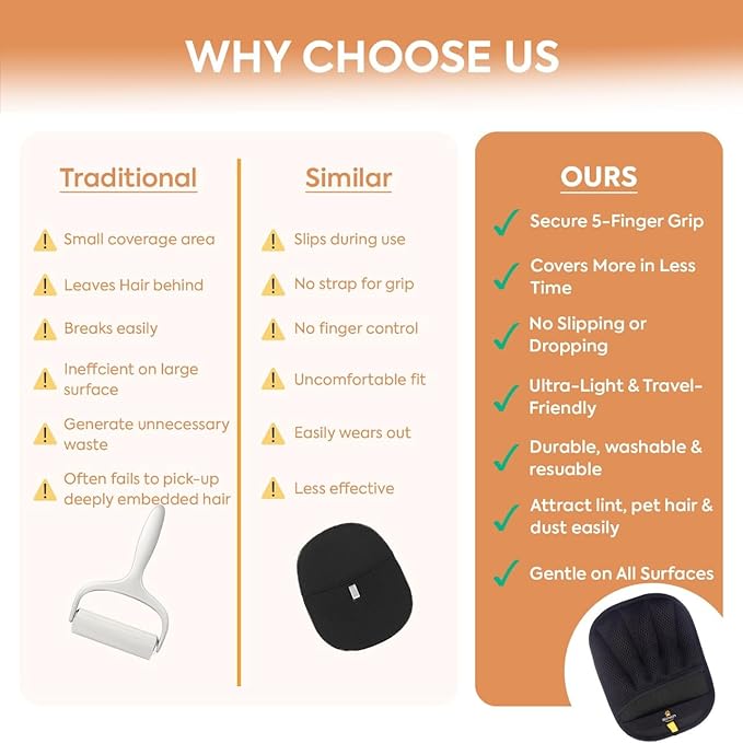 - Versatile Solution for Home & Car Pet Hair: A practical pet accessory for every dog and cat owner. Helps keep your living spaces, vehicle interior, and garments cleaner from shedding fur. This compact and versatile pet hair mitt is a useful tool for routine cleaning needs.