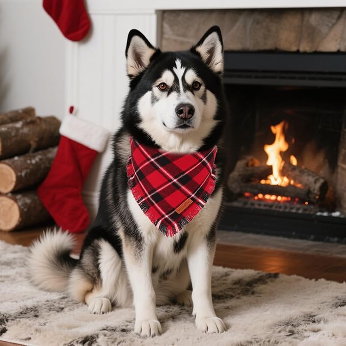 - Christmas Dog Bandanas: Stylish red green plaid christmas themed dog scarf with tassels edges, specially designed for your furry friend, full of christmas atmosphere, make your pets be attractive for christmas holiday!
