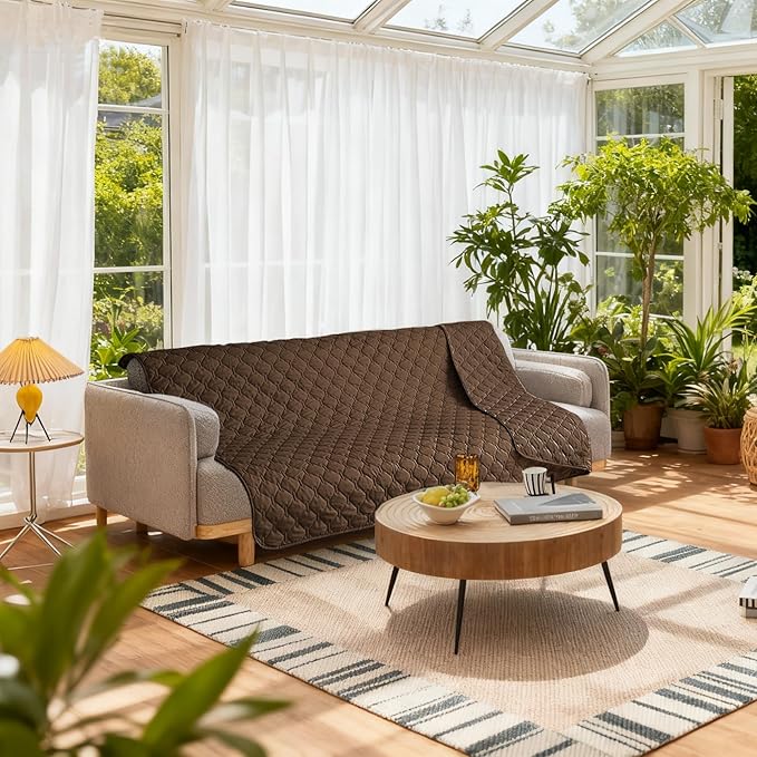 gogobunny 3X Stronger Waterproof Pet Blanket, Scratch Proof Furniture Protector for Dogs Cats, Reversible Cover 82x82 Inch, Dark Chocolate