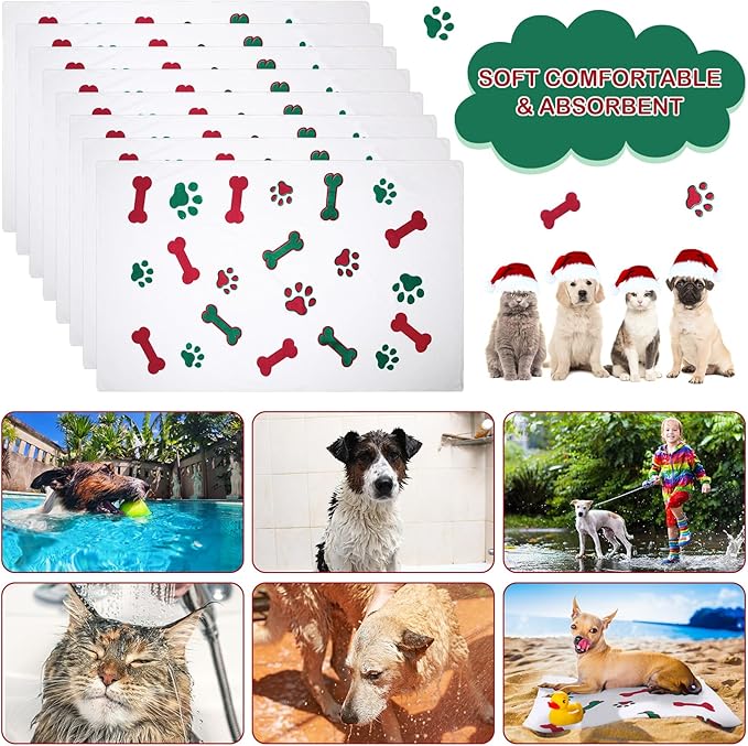 - Package Quantity: the package comes with 8 pieces of pet towels for dogs, which are easy to use and replace, measuring approx. 40 x 24 inches/ 100 x 60 cm, suitable for medium and small pets; The bath towel with classic footprints and bone prints are designed for pets, for personal use or as a gift to a friend