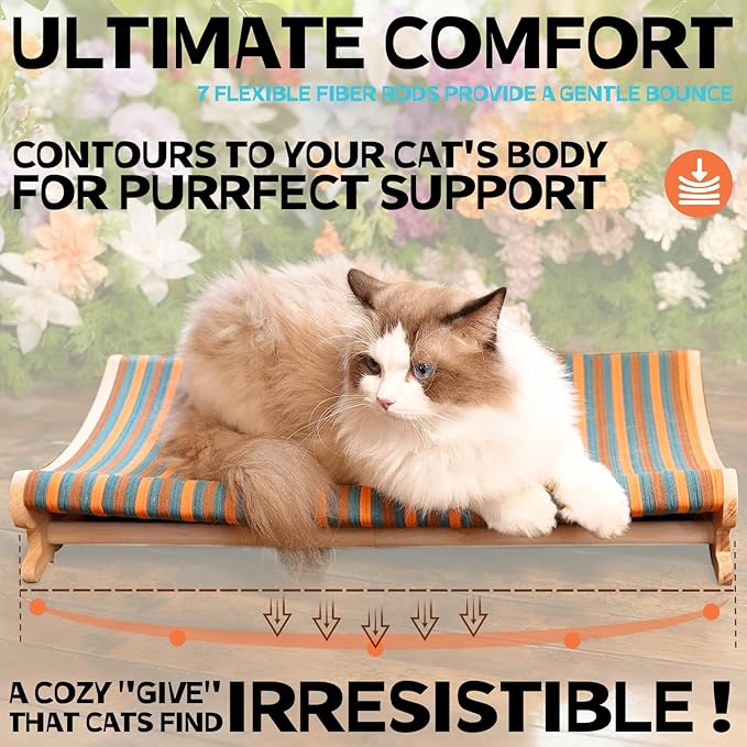 - Elastic design with 7 built-in fiber rods for gentle contouring—slightly sinks under your cat's weight and rebounds for optimal comfort.