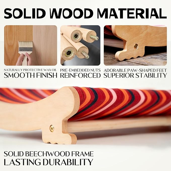 - Durable natural beech wood frame with a smooth finish for stability and rustic charm, featuring cat-shaped feet for added safety.