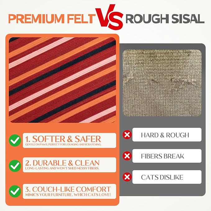 - MOMENPET DIY Felt Cat Scratcher Bed, Durable Scratching Pad for Indoor Cats, Sturdy Solid Beech Wooden Cats Scratcher, Lounger & Sleep & Scratch (Extra-Larger), Red