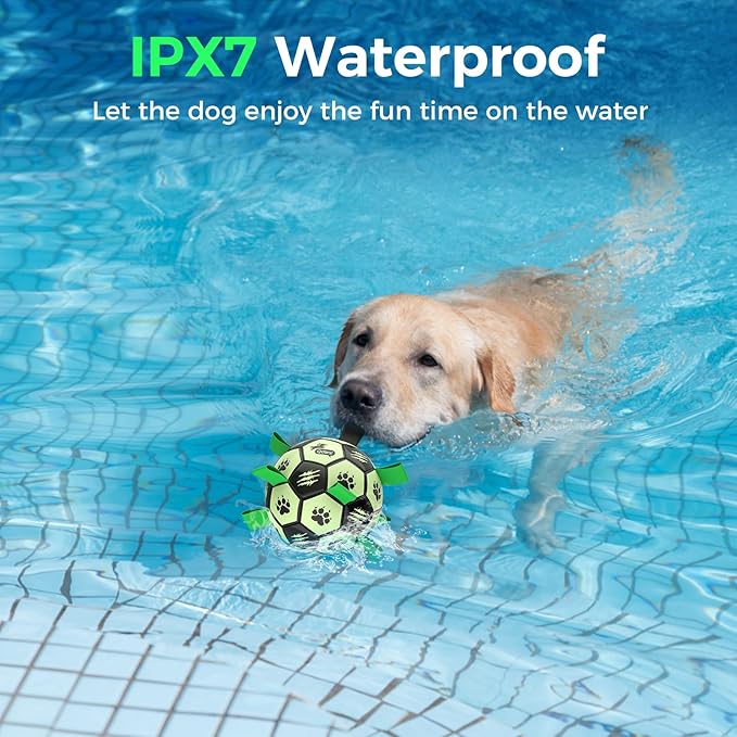 • [ New Glow in the Dark Dog Toys] As night is approaching, this distinctive premium dog soccer ball will glow with green neon light under continuous irradiation time. The light dog ball can attract a dog's attention and share its joy with you. Continuous lighting ensures that your dog can always find this toy ball and no longer have to worry about not finding the ball at night