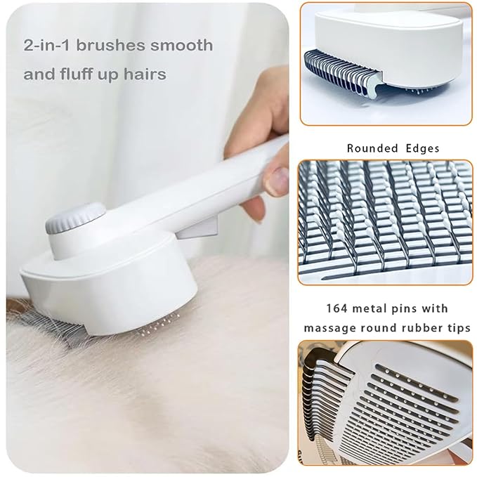 2-In-1 Pet Grooming Kit;Dog Brush For Shedding,Cat Brush For Long Haired Cats- Self-Cleaning Shedding & Detangling Brush,Dual-Direction Design - Professional For Long/Short Haired & Indoor Cats