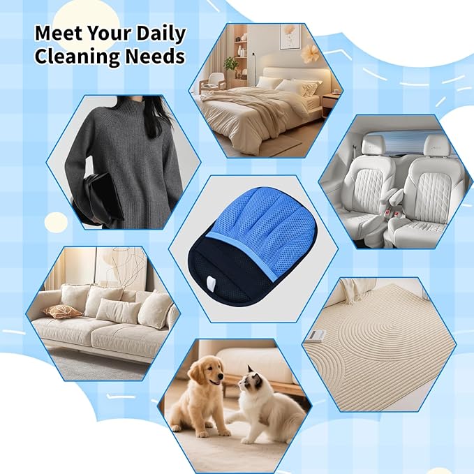 - 【Easy to Use】Harnessing electrostatic power, This pet hair removal glove can effortlessly lift lint, pet hair, and dust. dust with gentle left-to-right strokes. No more tedious rolling or struggling with stubborn debris!
