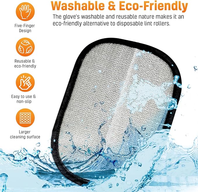 - Reusable & Easy to Clean – Washable gloves remove pet hair from beds, rugs, curtains, and sofas. Rinse and reuse this eco-friendly dog hair remover and cat fur cleaner.