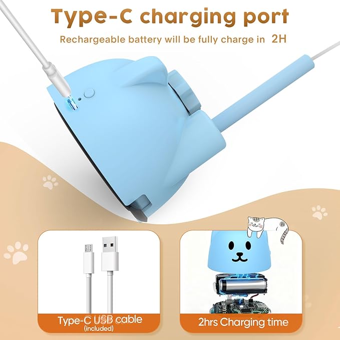 - Convenient USB Rechargeable Design - This cat interactive toy features a USB-rechargeable design that’s eco-friendly and simple to use. Its quiet operation makes it one of the best cat toys for apartments, families, or senior cats who prefer gentle motion. Suitable for pet toys collections in modern homes.