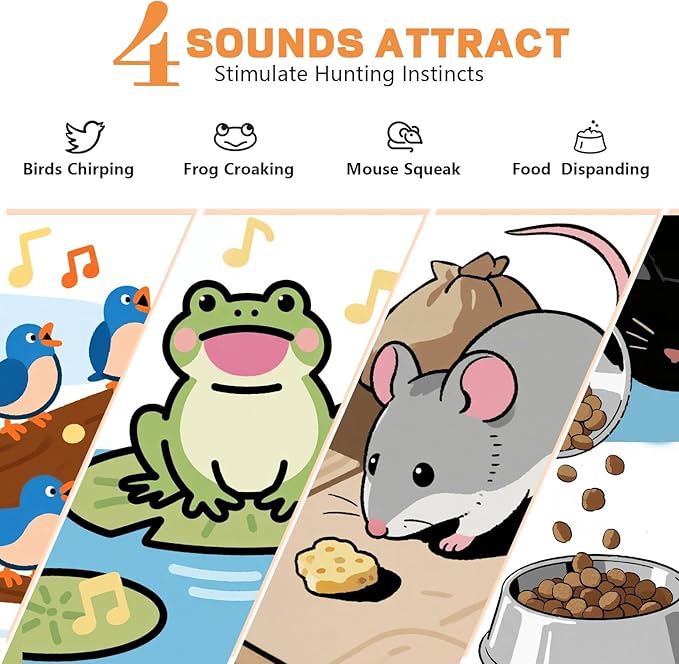 - 🐱 Play with Autonomy: Whether you're home or away, your cat can start the fun with a simple touch. KiwiLove automatic cat toy choose from four modes - Quick, Slow, Interactive, and Do Not Disturb (silent, no timer, no light) - to suit your cat's play style.