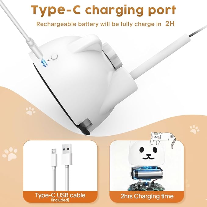 - Convenient USB Rechargeable Design - This cat interactive toy features a USB-rechargeable design that’s eco-friendly and simple to use. Its quiet operation makes it one of the best cat toys for apartments, families, or senior cats who prefer gentle motion. Suitable for pet toys collections in modern homes.