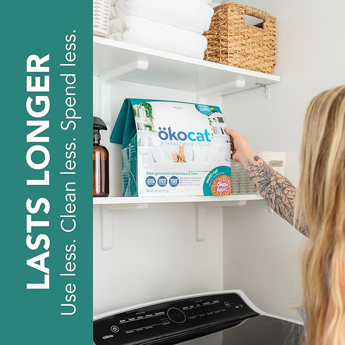 - UNSCENTED NATURAL CAT LITTER WITH OKO+ ODOR-BLOCKING POWER: okocat next-generation, plant-based, multi-cat premium wood clumping cat litter with oko+ has even more odor-blocking power using naturally formulated patented technology designed to combat unwanted stink, from urine to doo-doo too, while being exceptionally absorbent and naturally lightweight for added convenience and cleanliness